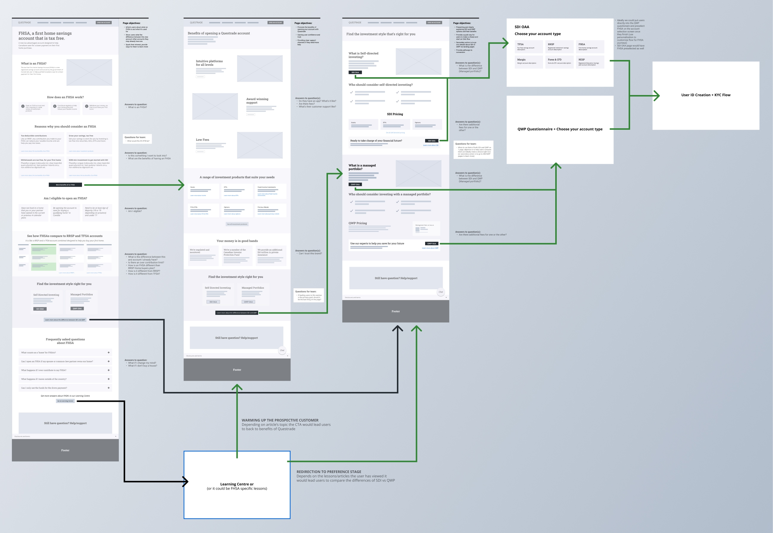 The "account type" page provided foundational knowledge, the "benefits" page introduced product offerings, and the "ways to invest" page detailed how each product could be customized based on user preferences and experience.